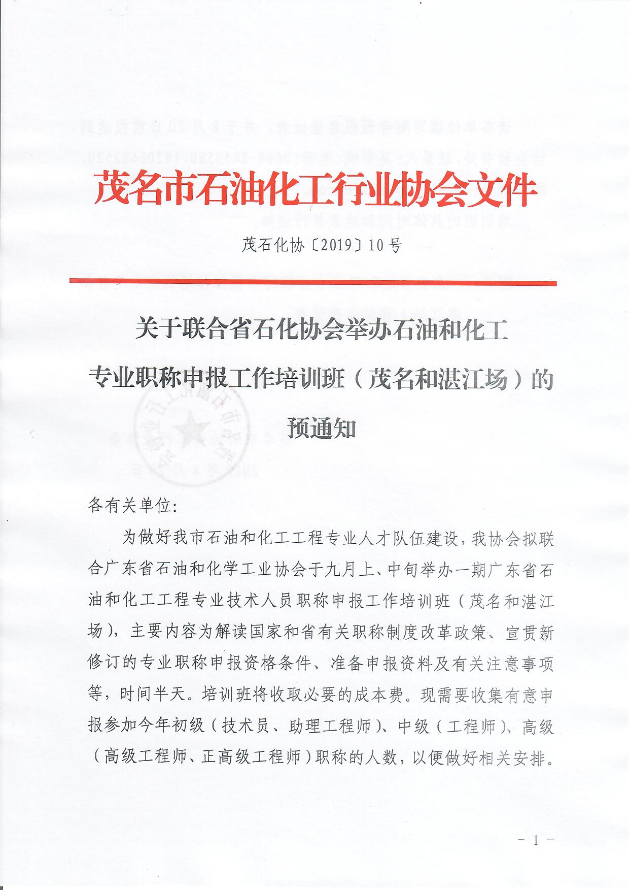 關(guān)于2018年度茂名市石油化工行業(yè)表彰推薦名單的公示